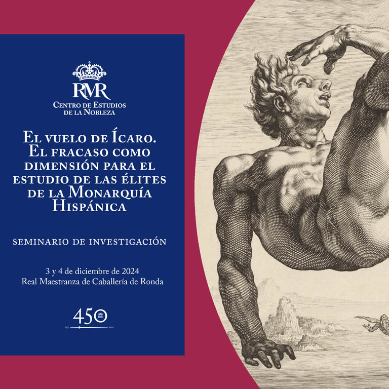 Durante los días 3 y 4 de diciembre de 2024, el Salón de Archivo y Biblioteca de la Real Maestranza acogerá el Seminario de Investigación «El vuelo de Ícaro. El fracaso como dimensión para el estudio de las élites de la Monarquía Hispánica», organizado por el Centro de Estudios de la Nobleza. Bajo la coordinación de Santiago Martínez Hernández y Carmen Sanz Ayán, profesor titular y catedrática, respectivamente, del Área de Historia Moderna de la Universidad Complutense de Madrid, las sesiones de trabajo programadas reunirán a una docena de investigadores procedentes de diferentes universidades y centros de investigación nacionales e internacionales.