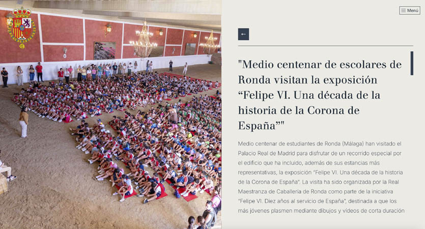 Entre las actividades destacadas en esta web figura la organizada por la Real Maestranza de Caballería de Ronda, que tuvo lugar el 19 de junio de 2024 bajo el título «Felipe VI. Diez años al servicio de España». En esta iniciativa, más de 1.500 escolares participaron elaborando dibujos y reels que rendían homenaje a S.M. el Rey.