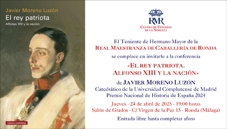 Paralelamente a la celebración del Seminario de Investigación «La definición de un atractivo. La nobleza ante la modernidad», cuya coordinación está a cargo de José Miguel Hernández Barral, el Centro de Estudios de la Nobleza ha programado una conferencia abierta al público de Javier Moreno Luzón titulada «El rey patriota. Alfonso XIII y la nación».