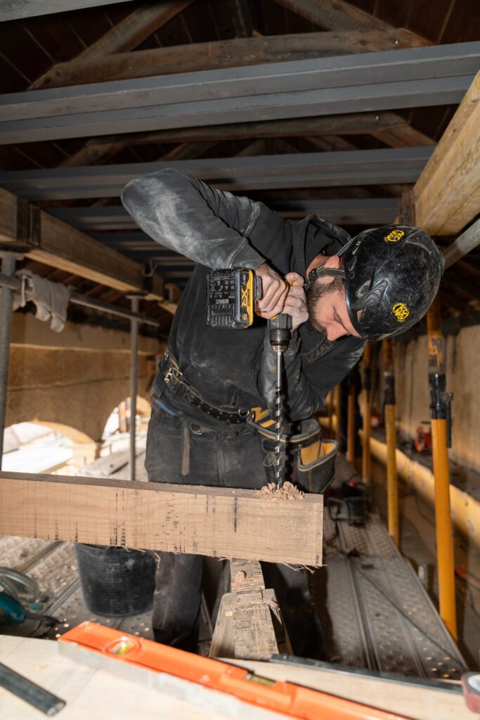 Trabajos de carpintería del proyecto de consolidación en la Plaza de Toros de la Real Maestranza de Caballería de Ronda
