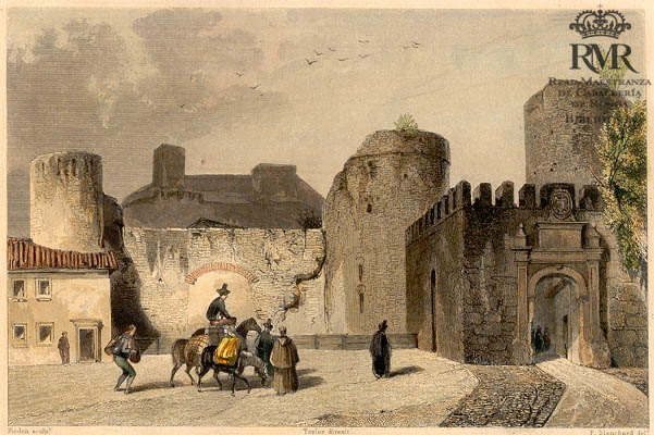 La h. de grab.: “Taylor direxit. P. Blanchard delt. Finden sculpt.” representa una vista de la Puerta de Almocábar.